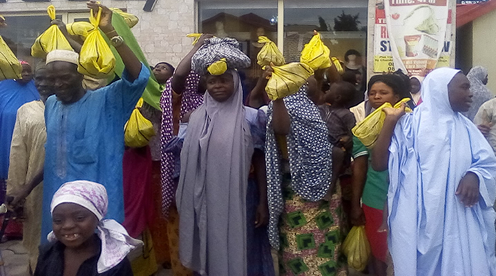 All of our relief activities are carried out by volunteers. As such, there are absolutely no expenses for us other than for feeding the poor; no salaries, no office rent, etc. This ensures that 100% of your donation is used to help needy families in Nigeria.